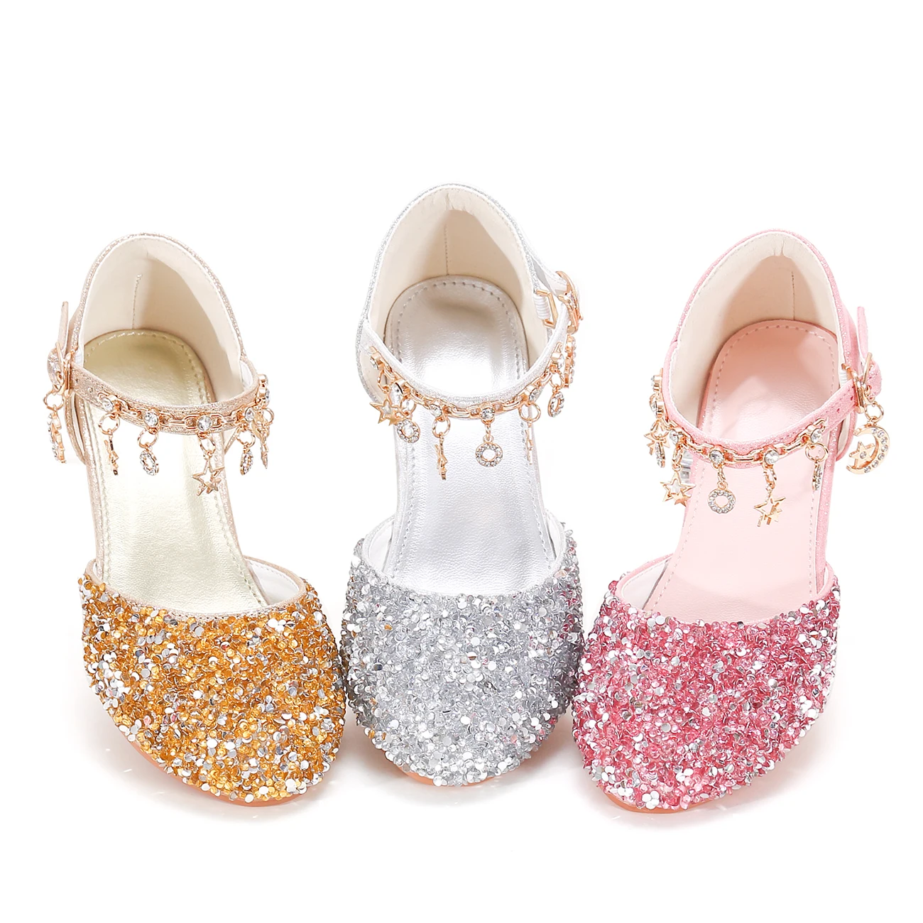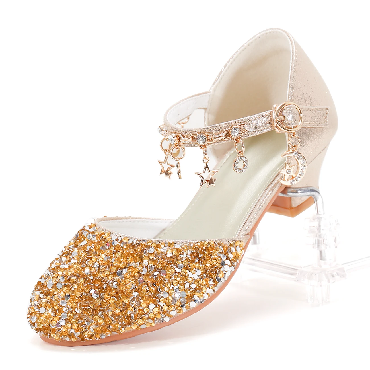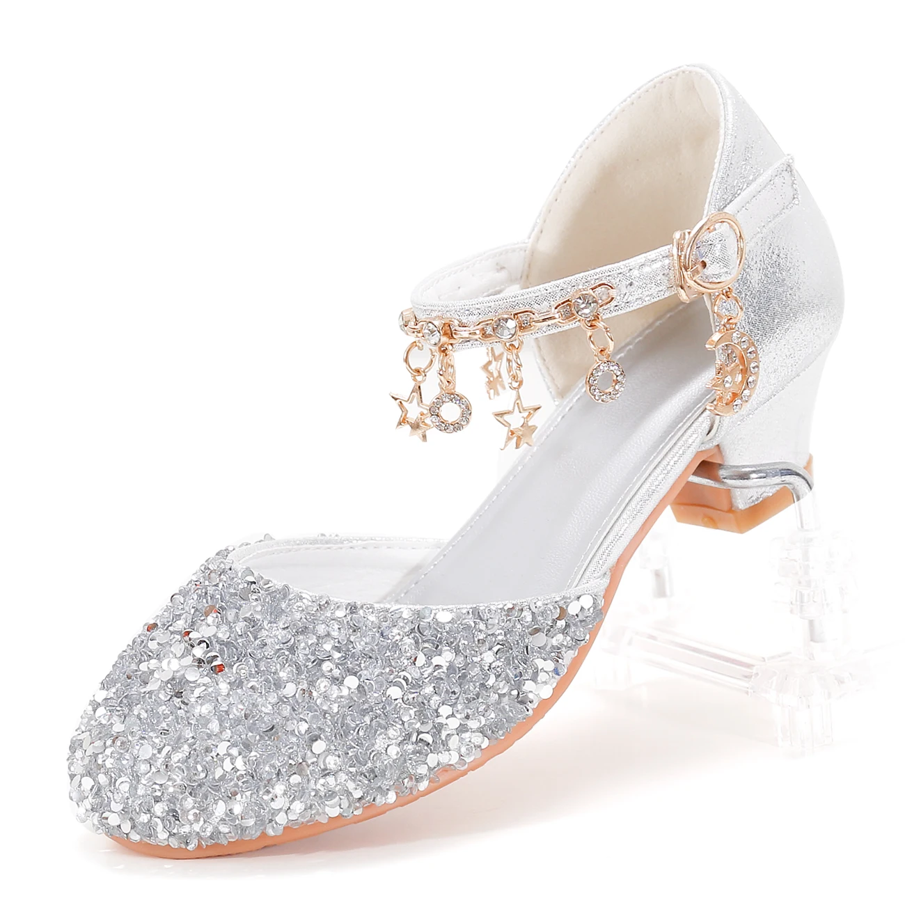 Girls' Princess Style Shiny Star Heeled Shoes 3367