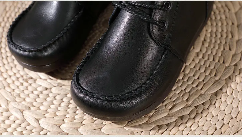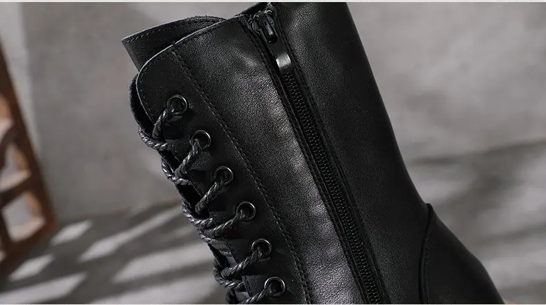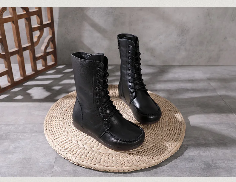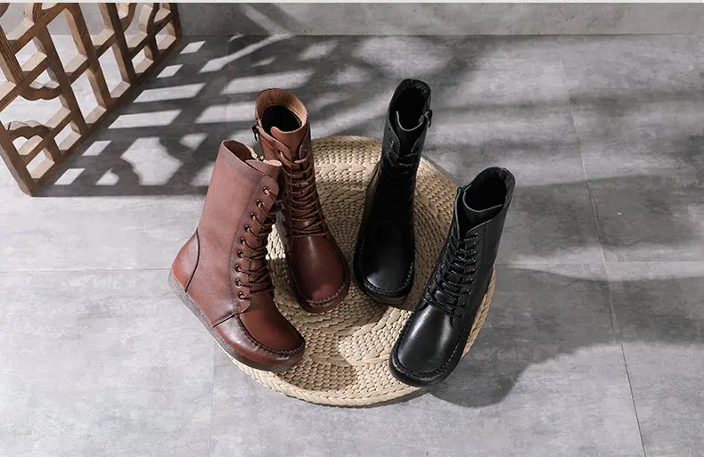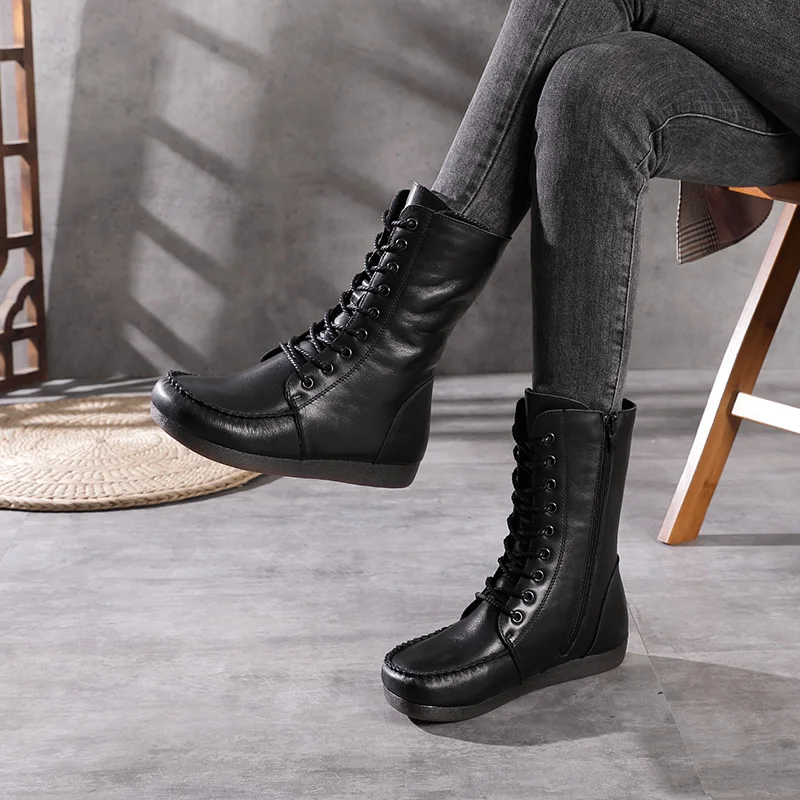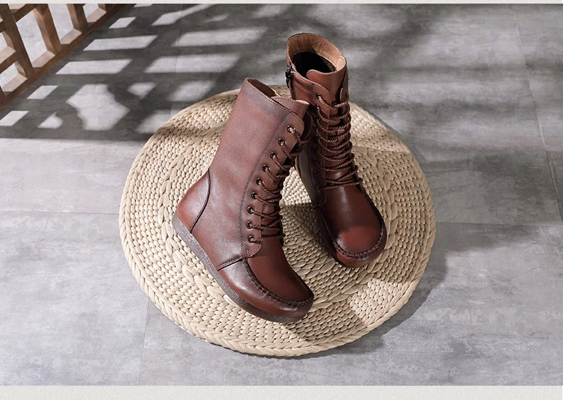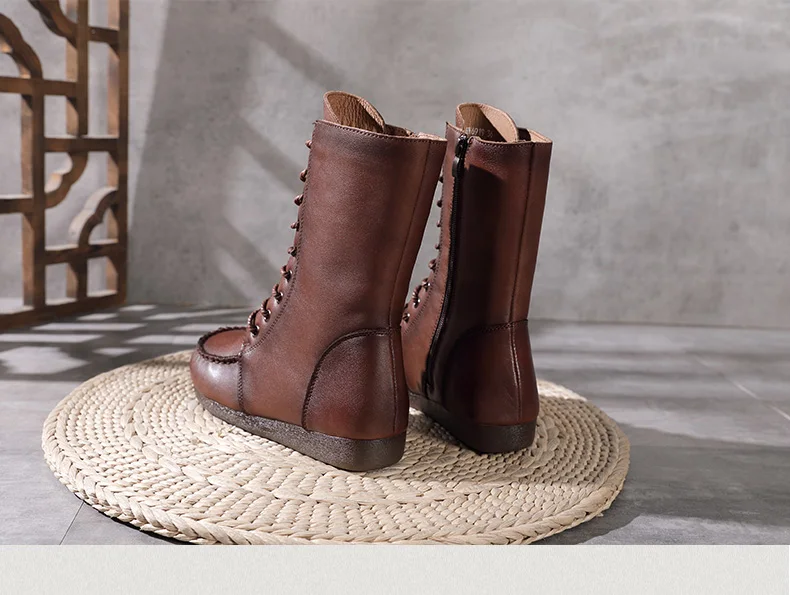Women Lace Up Medium Top Genuine Leather Boots 3766