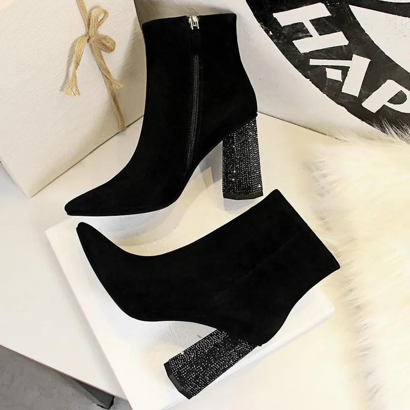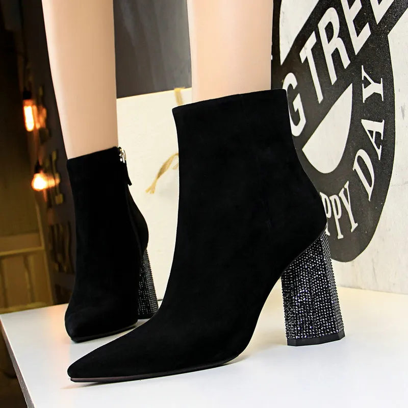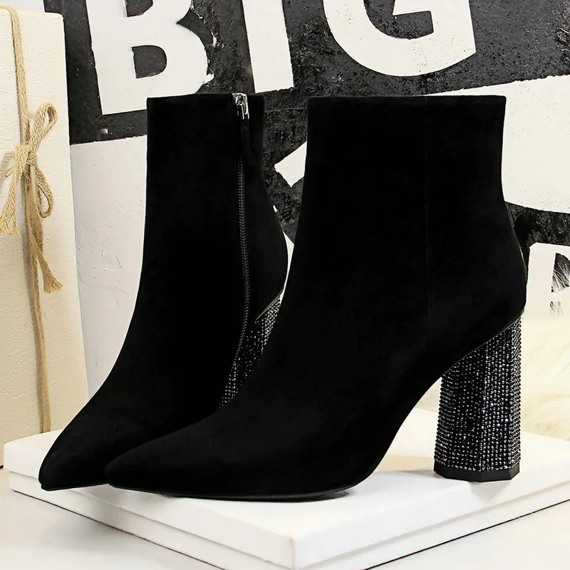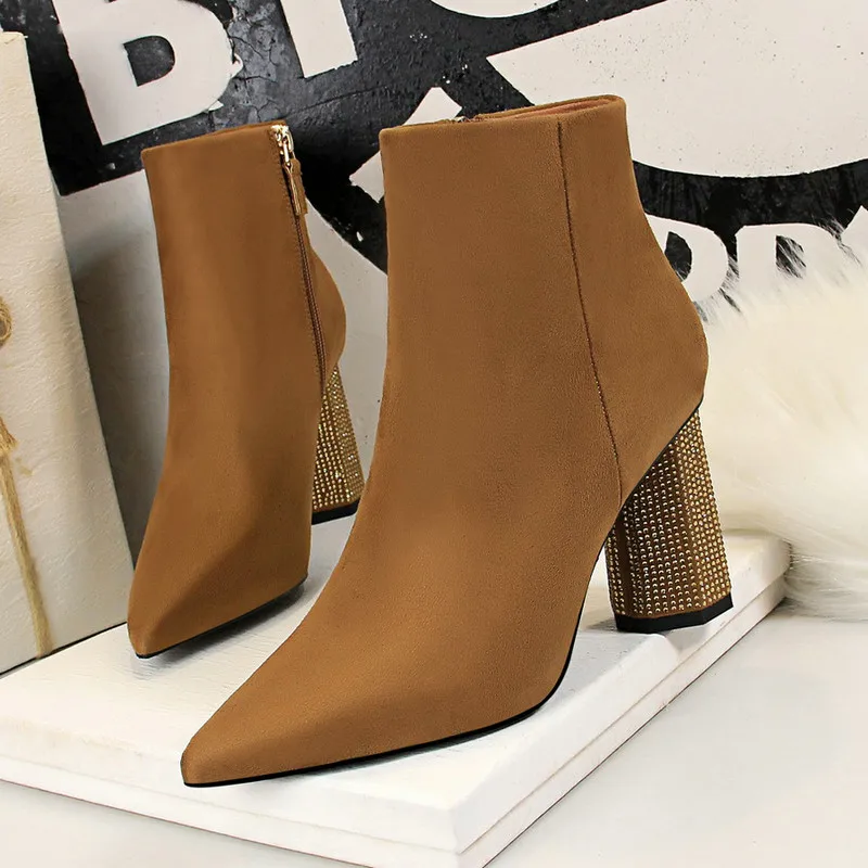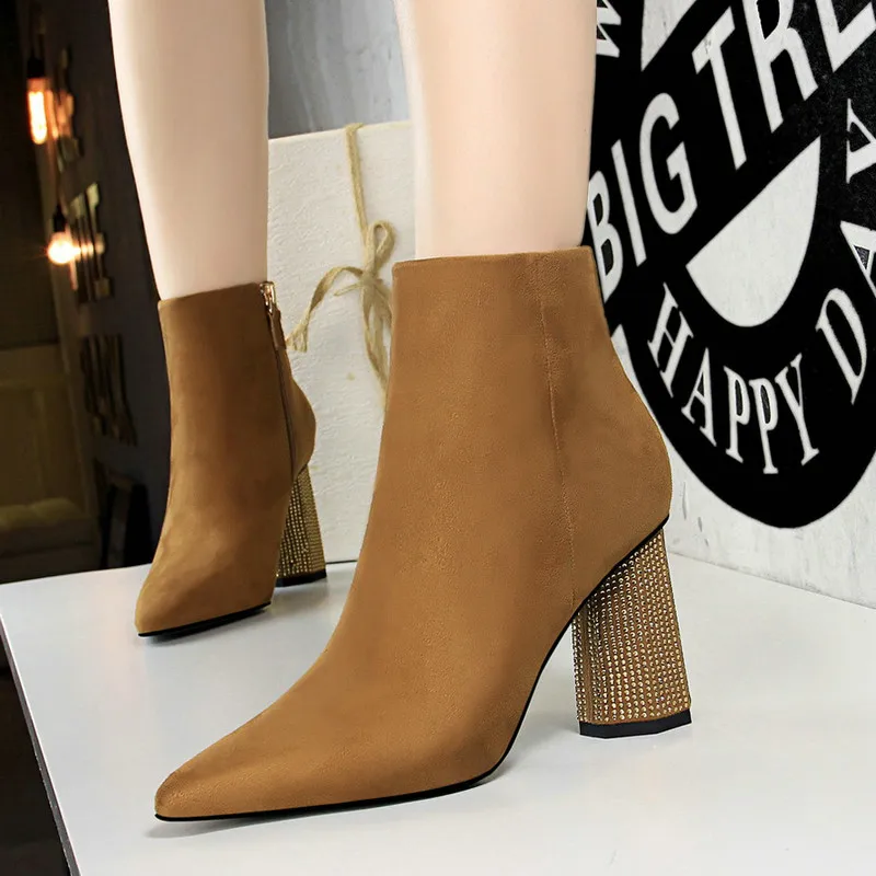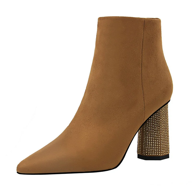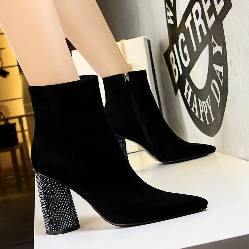 Women Pointed Toe High Heel Ankle Boots 9654-2