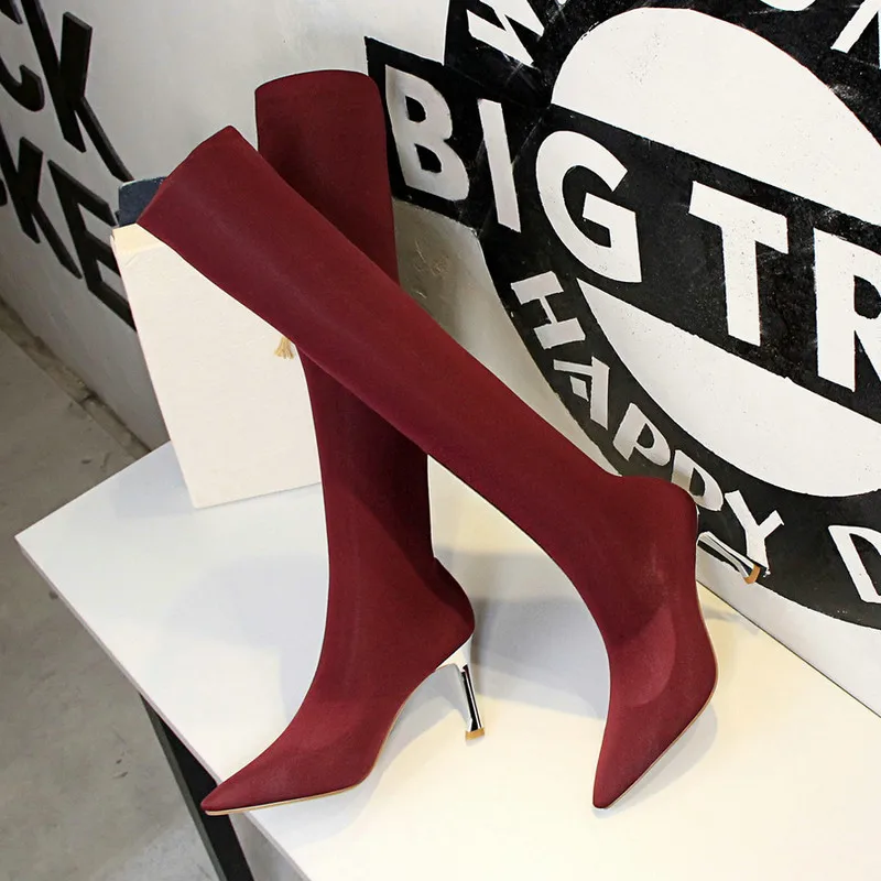 Women Pointed Toe High Heel Over Knee Boots 6247-1