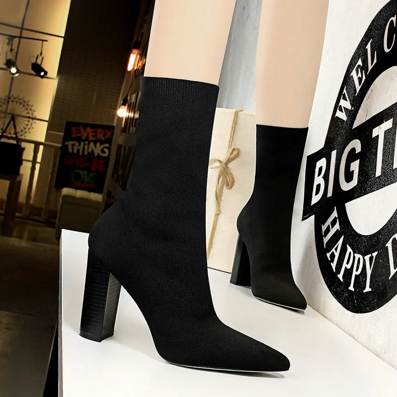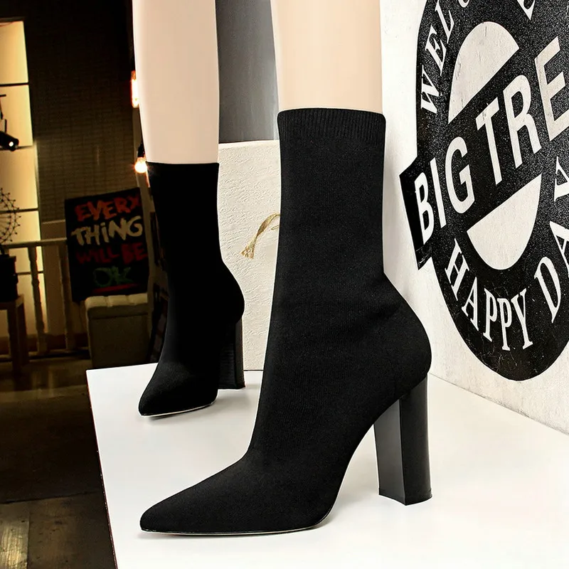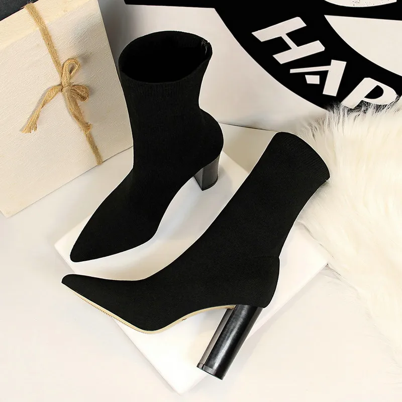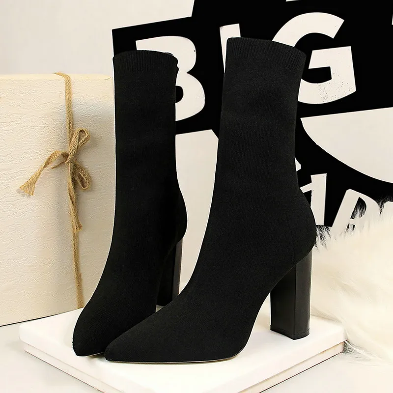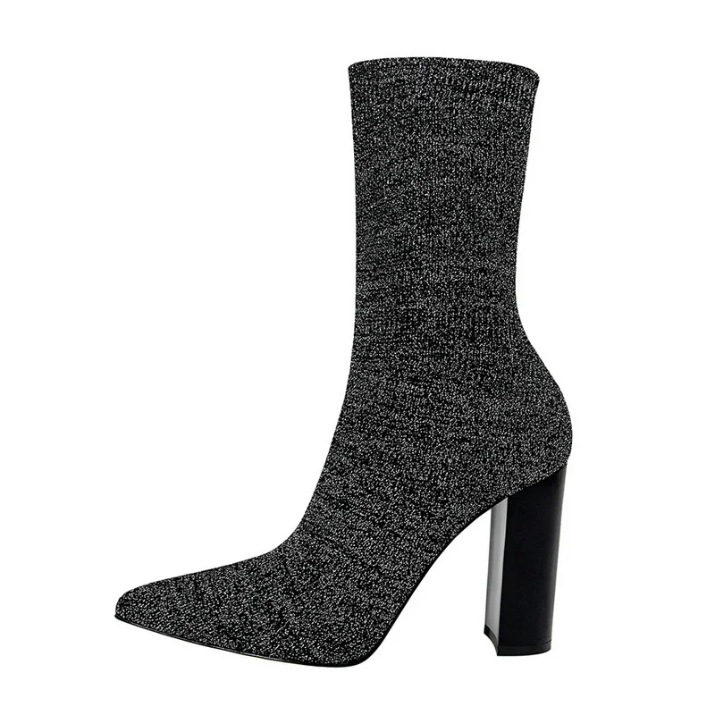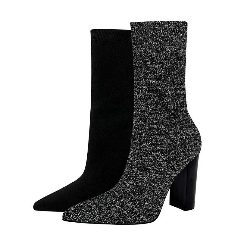 Women Pointed Toe Stretch Knitting Sock Boots 3129-2