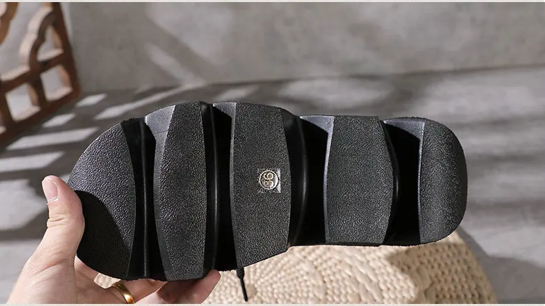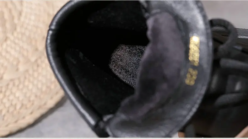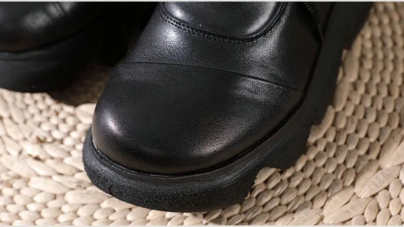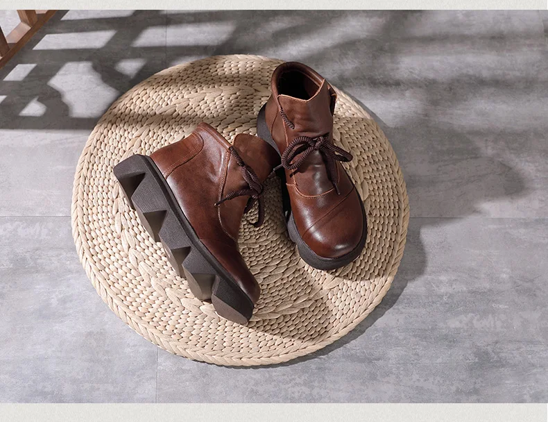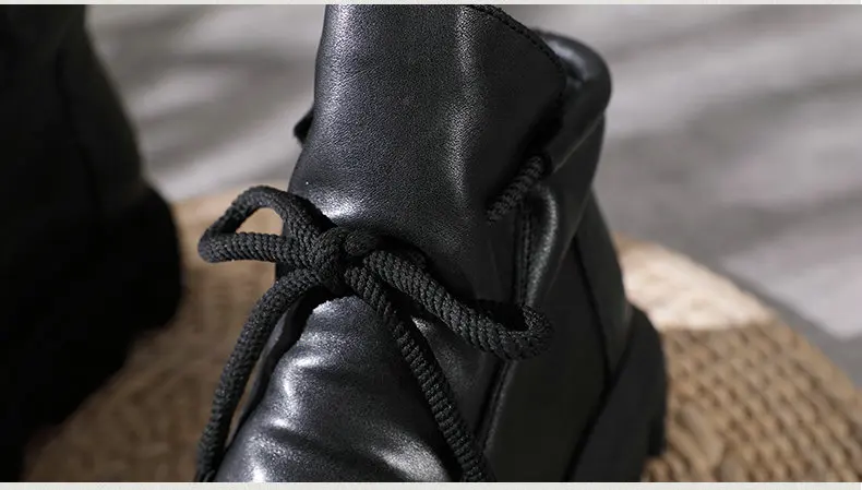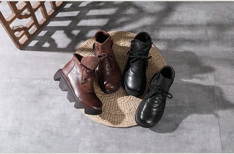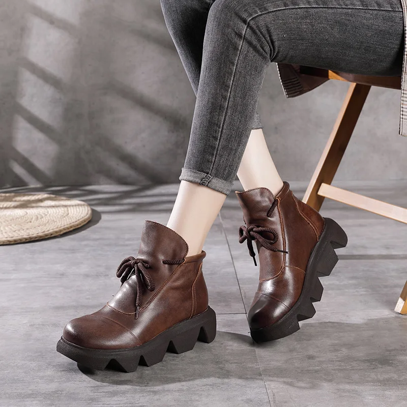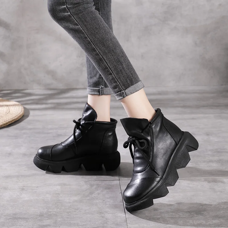 Women Round Toe Genuine Leather Lace Up Platform Boots 3672