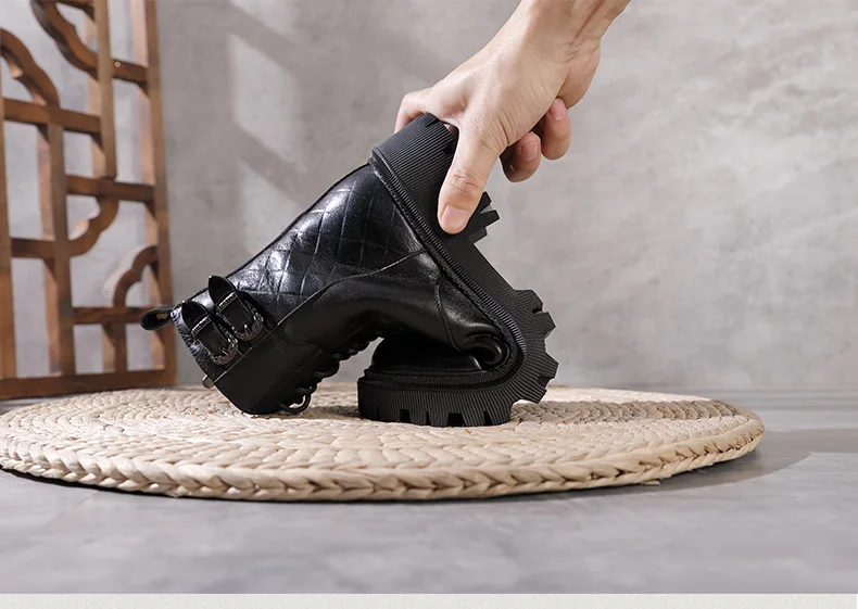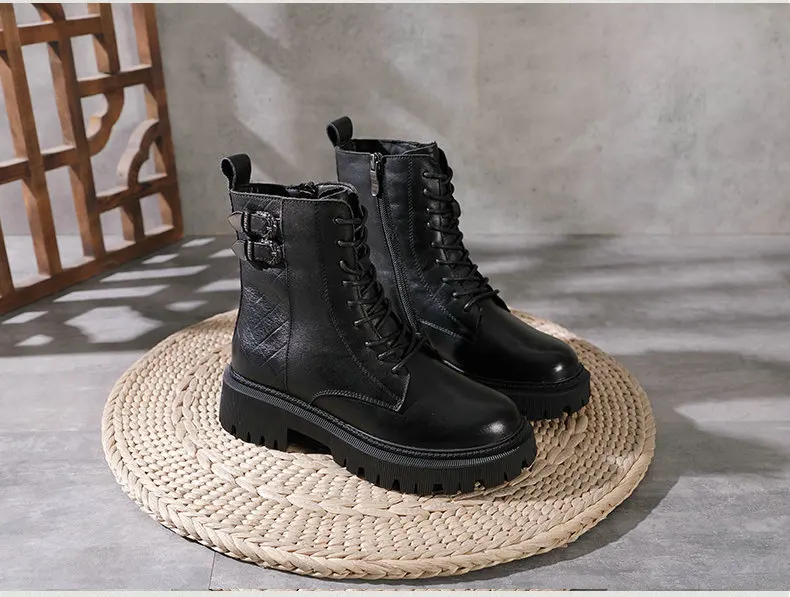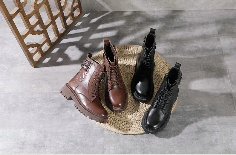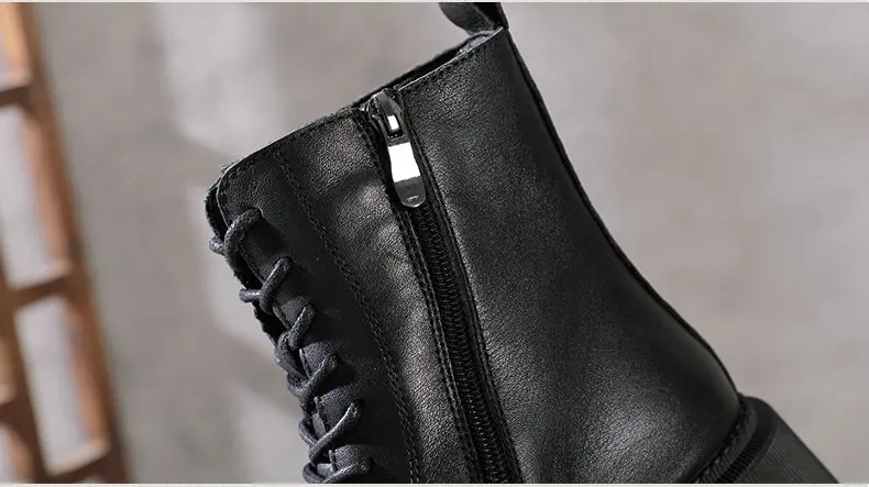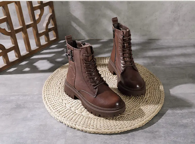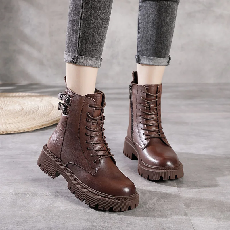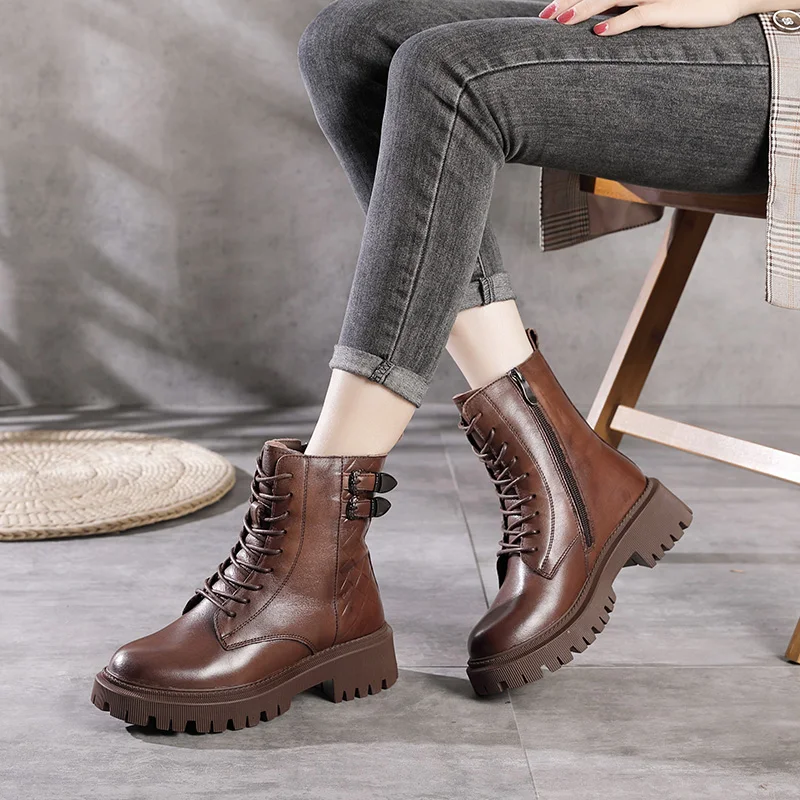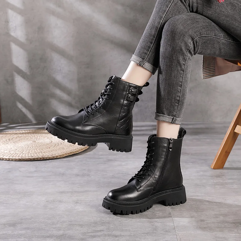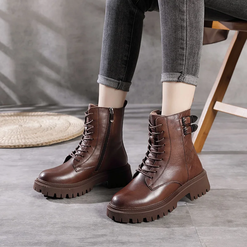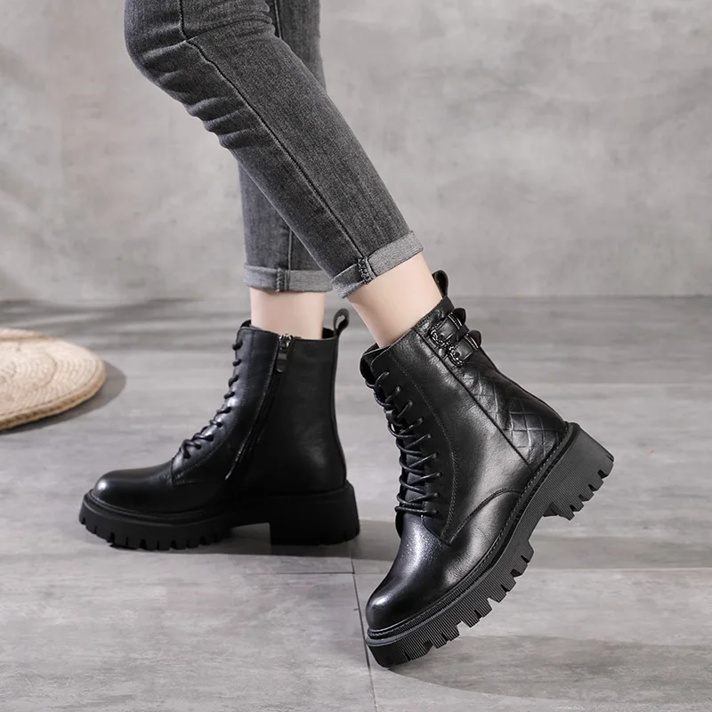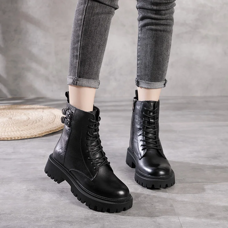 Women Round Toe Side Zipper Design Genuine Leather Ankle Boots 1316-3