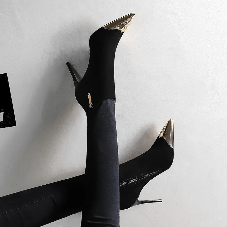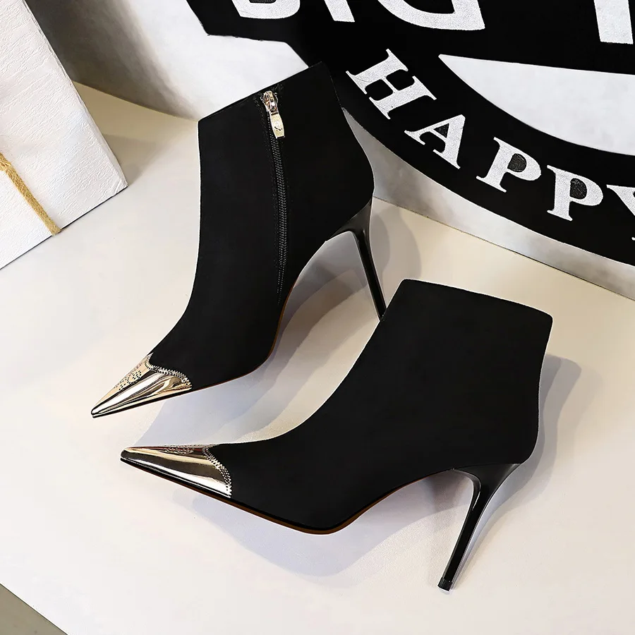 Women Suede Leather Thin Heels Ankle Boots 173-1