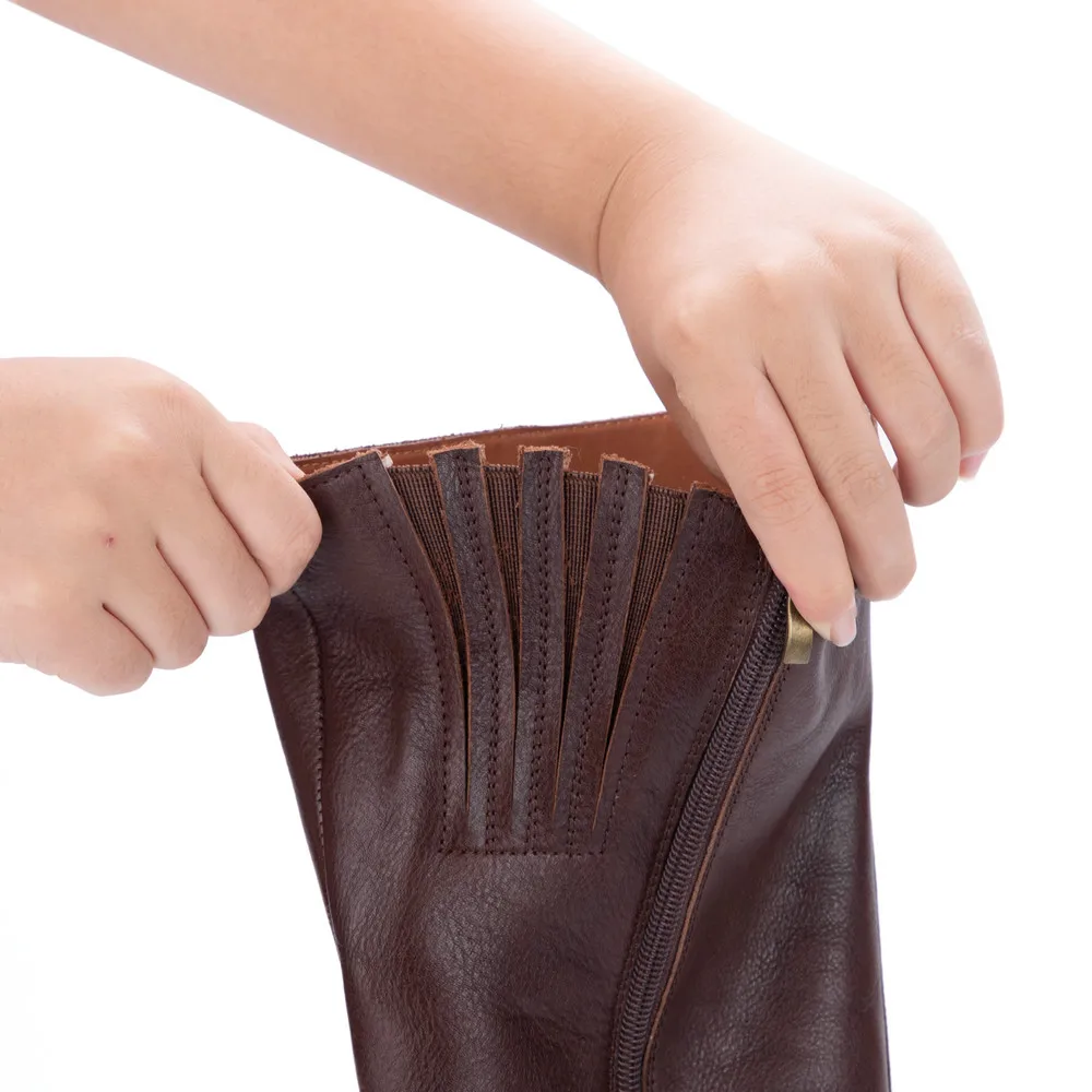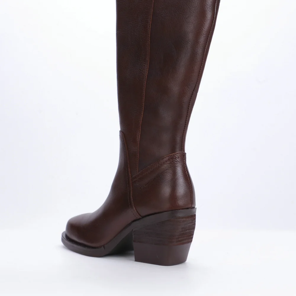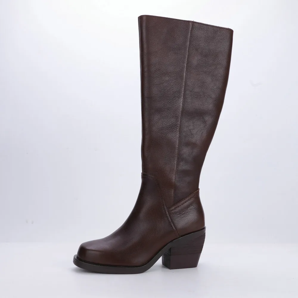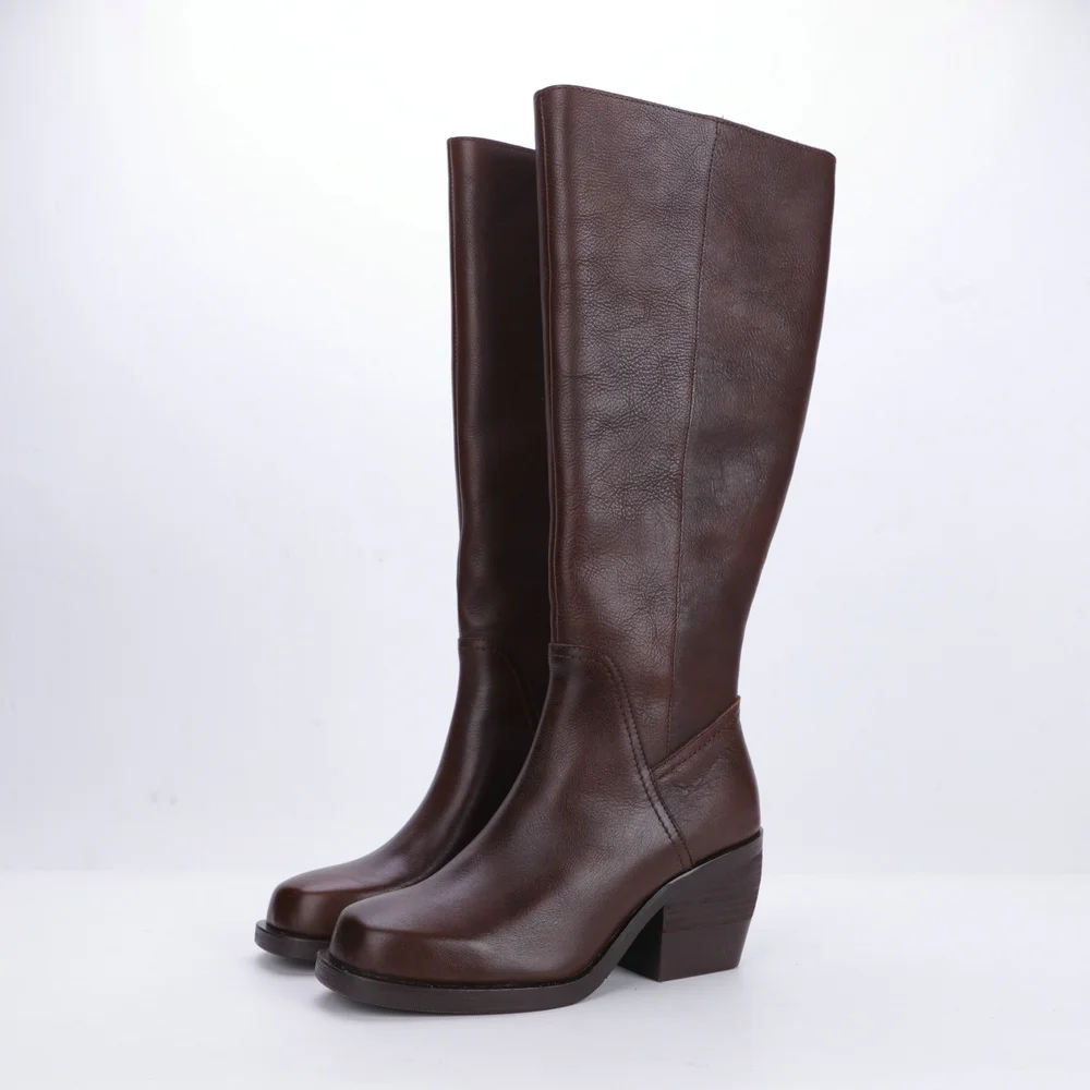 Women's Round Toe Thick Heel Genuine Leather Tall Boots 3561